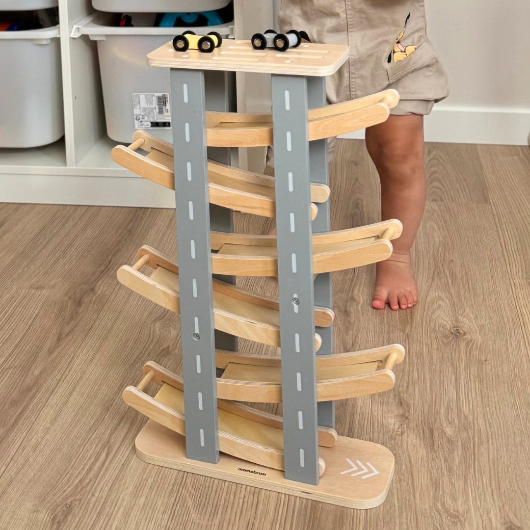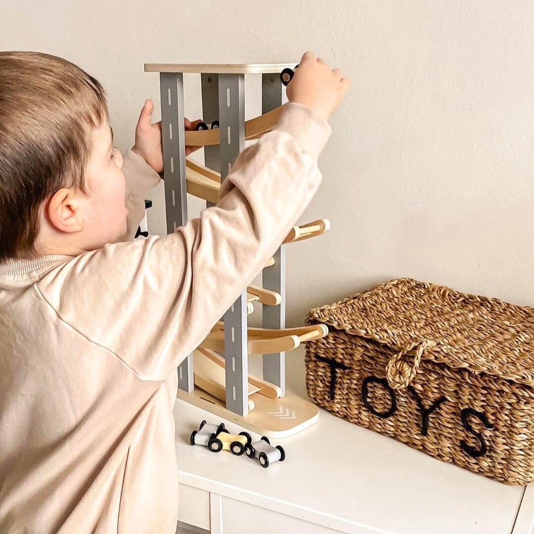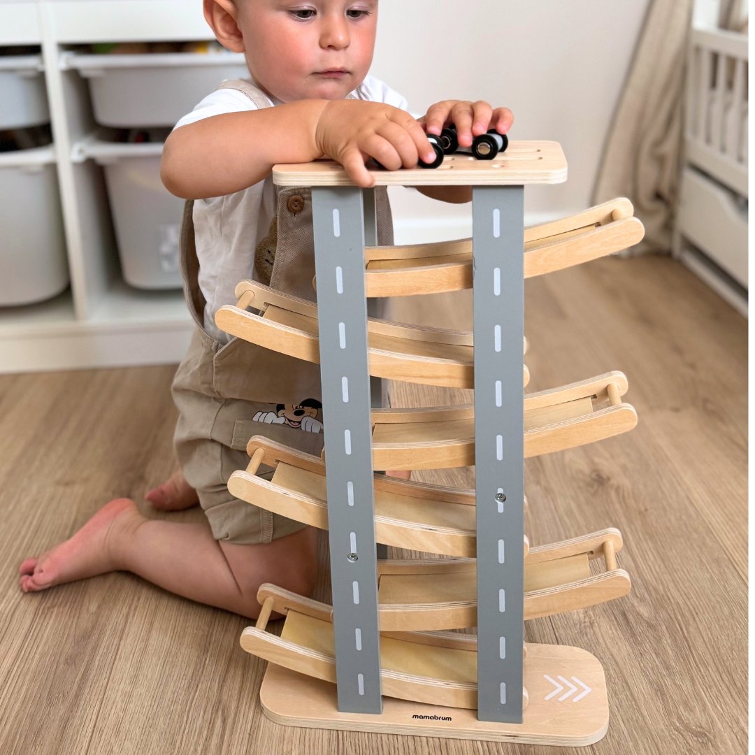 Puinen rata autoilla on täydellinen lahja pienelle autojen ystävälle. Ota vain auto pois yläosassa olevasta parkkipaikasta ja aseta se radan ylimpään kerrokseen. Auto ajaa sitten alaspäin, kiipeää kaikki kerrokset yksi kerrallaan ja saa vauhtia ajamiseen. Tämä näkymä ilahduttaa varmasti jokaista taaperoa. Puinen rata ei ainoastaan tarjoa viihdettä, vaan se tukee myös taaperoiden kehitystä.