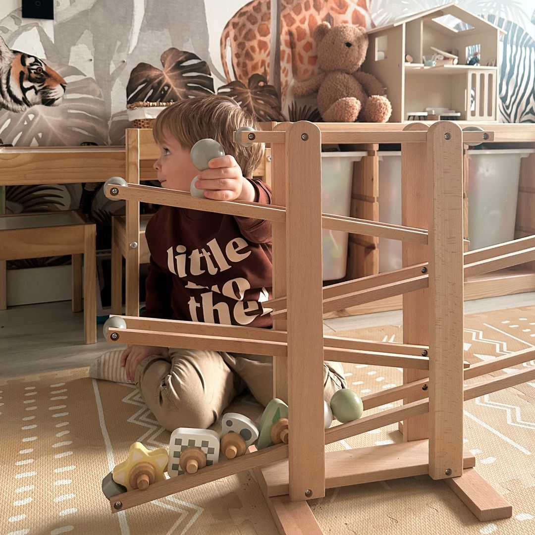 Lelu, joka herättää jokaisen taaperon mielenkiinnon. Elementtien liikkumisen seuraaminen puista rataa pitkin on fantastista viihdettä!