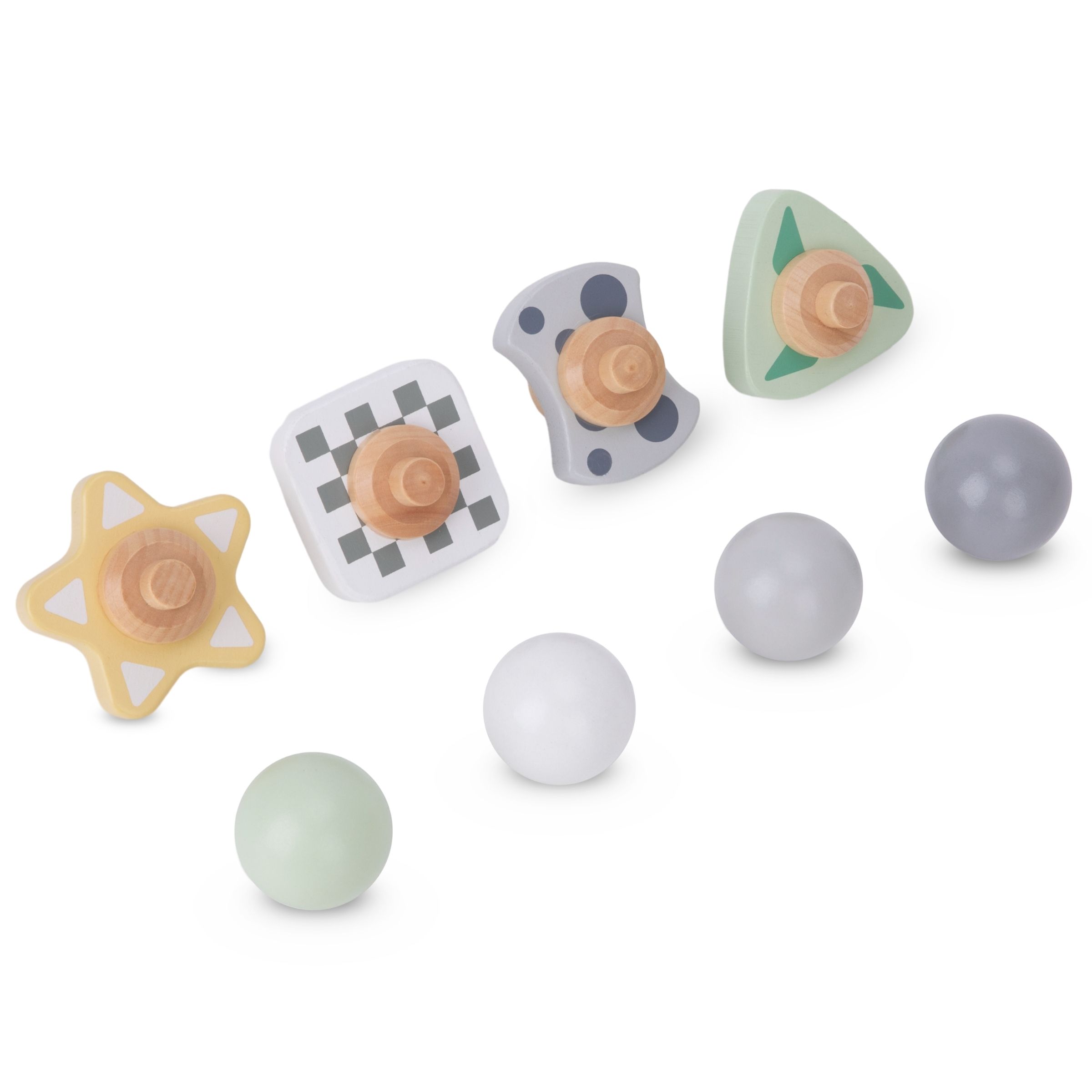 Aseta pallo yksinkertaisesti puiselle radalle ja seuraa sen sulavaa liikettä. Lapsesi ei varmasti pysty irrottamaan katsettaan siitä. Puusta valmistettujen pallojen lisäksi setti sisältää myös erivärisiä ja -muotoisia paloja. Kun ne pyörivät ja pyörivät, värit sekoittuvat toisiinsa, mikä stimuloi lasten aisteja ja saa pienimmät hymyilemään. Puinen culodrome tarjoaa taatusti tuntikausia hauskaa!