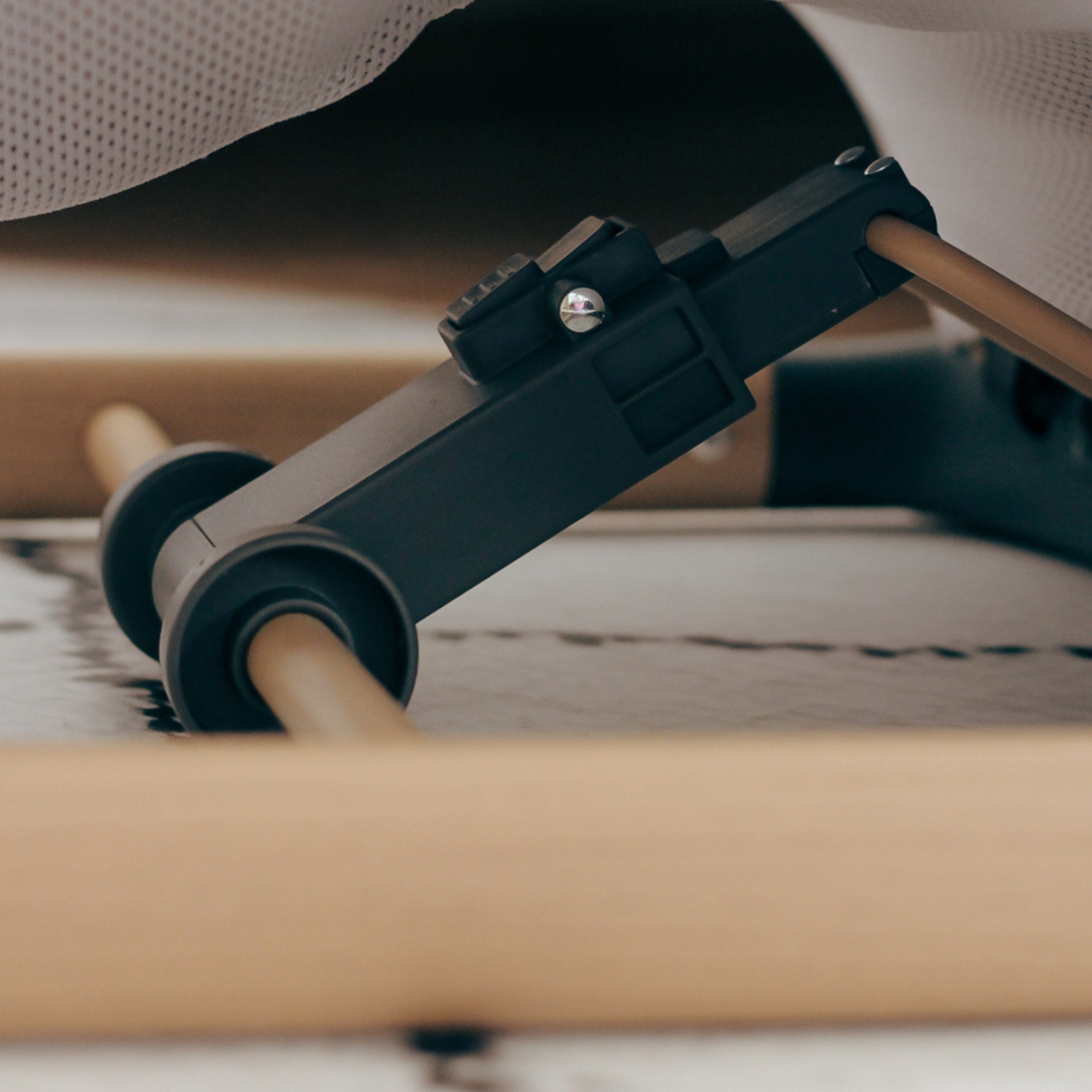 LILY-telineenminimalistinen muotoilu ja hillityt värit ovat nykyaikaisten trendien mukaisia, mikä takaa sopivan estetiikan eikä stimuloi vauvaa liikaa. Laadukkaat materiaalit ja hienosäädetyt yksityiskohdat ovat lisäbonus.
