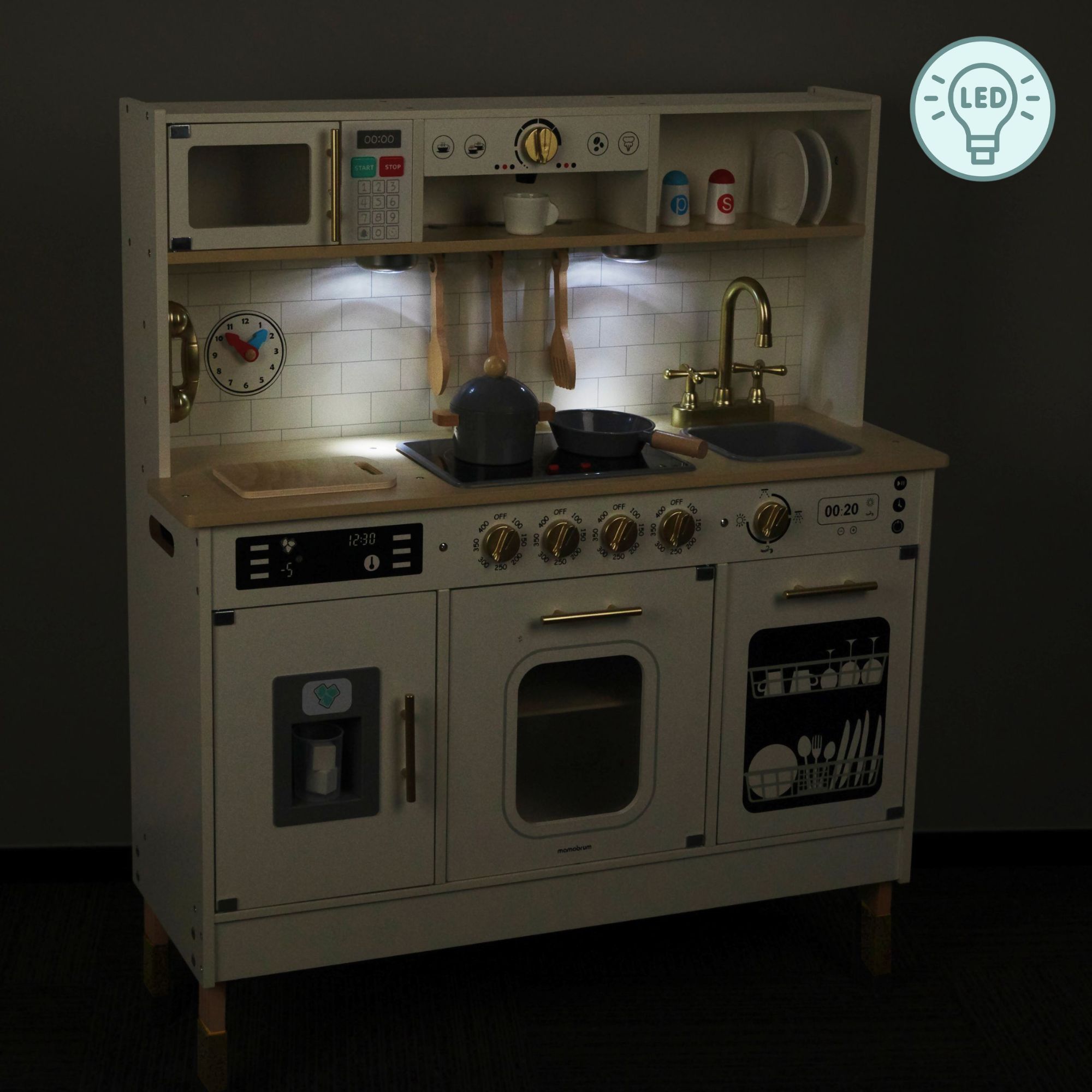 Interaktiivinen XXL-puinen keittiö lapsille lisävarusteilla ja LED-valaistuksella - kaksitasoinen