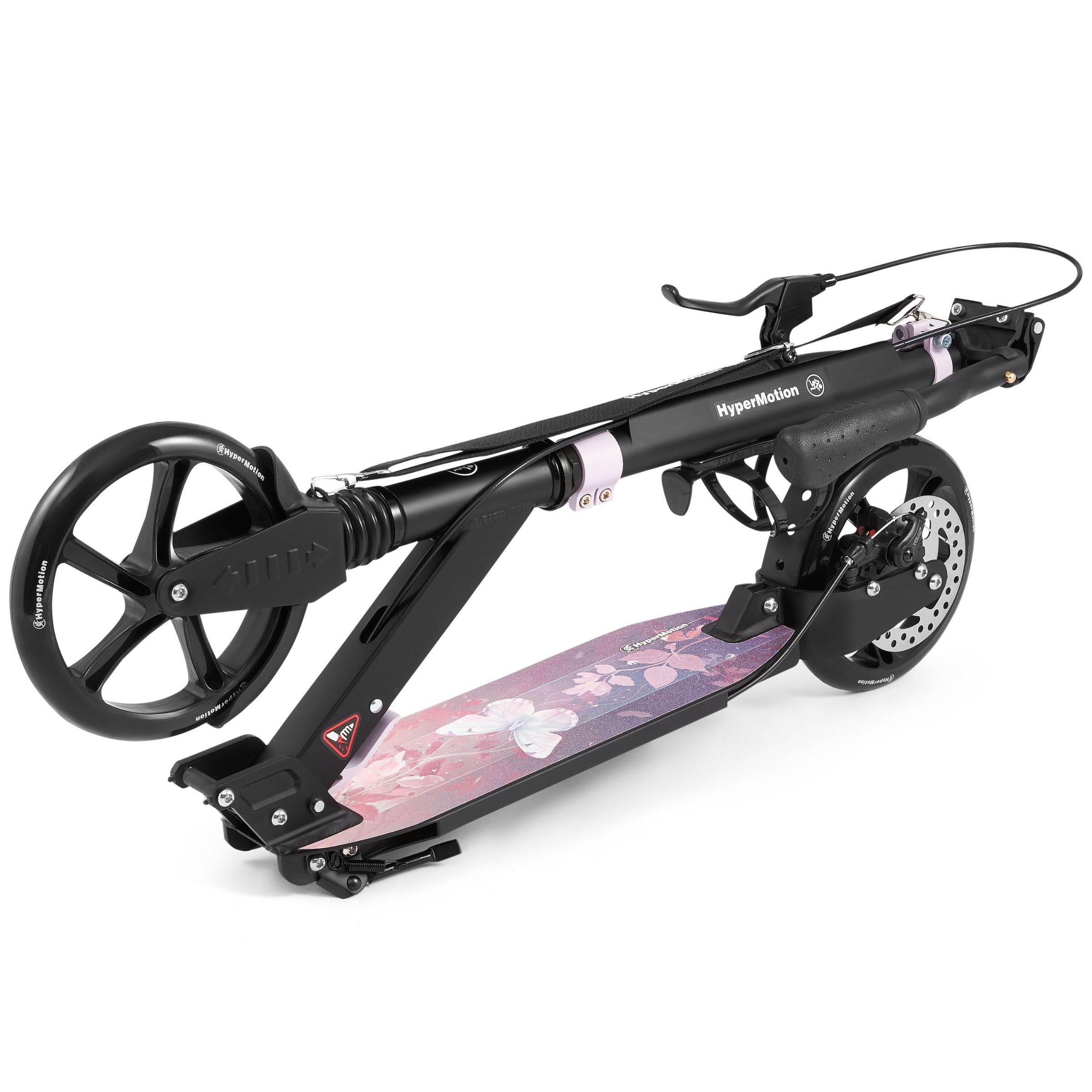 HyperMotion Skyline Pink -skootterilla pääset nopeasti kouluun tai töihin. Se toimii hyvin myös iltapäiväretkillä ja tarjoaa sinulle tarvittavan annoksen liikuntaa. Se on suunniteltu aikuisille, teini-ikäisille ja yli 6-vuotiaille lapsille, ja se takaa mukavan mutta turvallisen kyydin. Luonnon inspiroimalla painatuksella varustettuna se korostaa täydellisesti ainutlaatuista tyyliäsi ja antaa sinulle mahdollisuuden nauttia aktiivisista harrastuksista entistä enemmän.