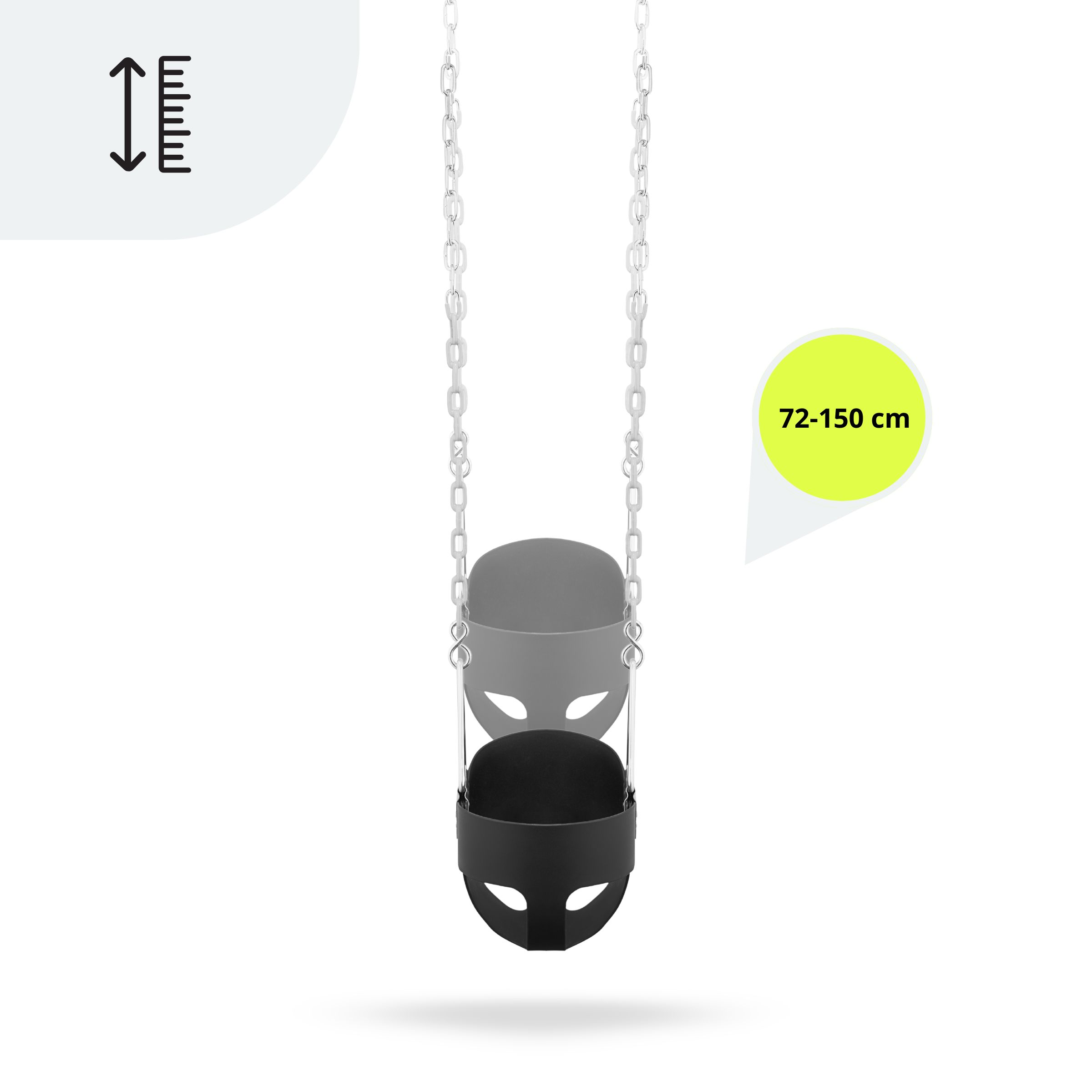 Tukevien ketjujen, kiinnityskoukkujen ja ämpäri-istuimen ansiosta keinu varmistaa, että pienellä lapsellasi on paitsi mukava myös turvallinen olo ulkoilun aikana. Korkean selkänojan ansiosta voit ottaa mukavan keinuasennon ja istuimen muotoilu estää pikkuista kallistumasta eteen-, taakse- tai sivuttain.