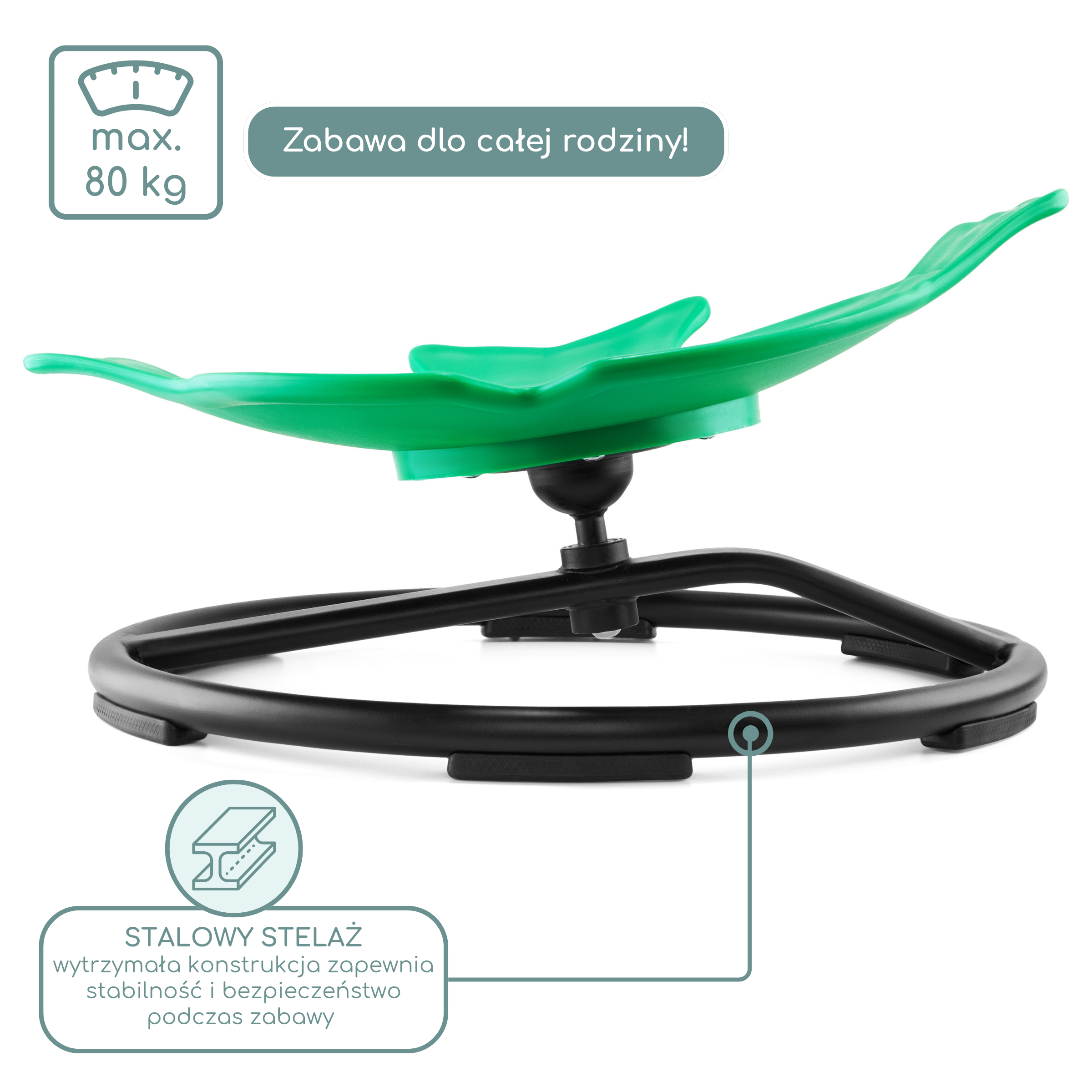 Hauskanpidon aloittamiseksi riittää, että istut taaksepäin ja siirrät kehonpainosi haluamallesi puolelle. Tämä johtuu siitä, että minikarusellin istuin on kallistettu oikeaan kulmaan. Lapsi päättää itse kierrosten määrän ja nopeuden sekä pyörimissuunnan. Ne pikkulapset, jotka eivät vielä hallitse tasapainoilua, voivat laittaa karusellin liikkeelle työntämällä jaloillaan maasta.