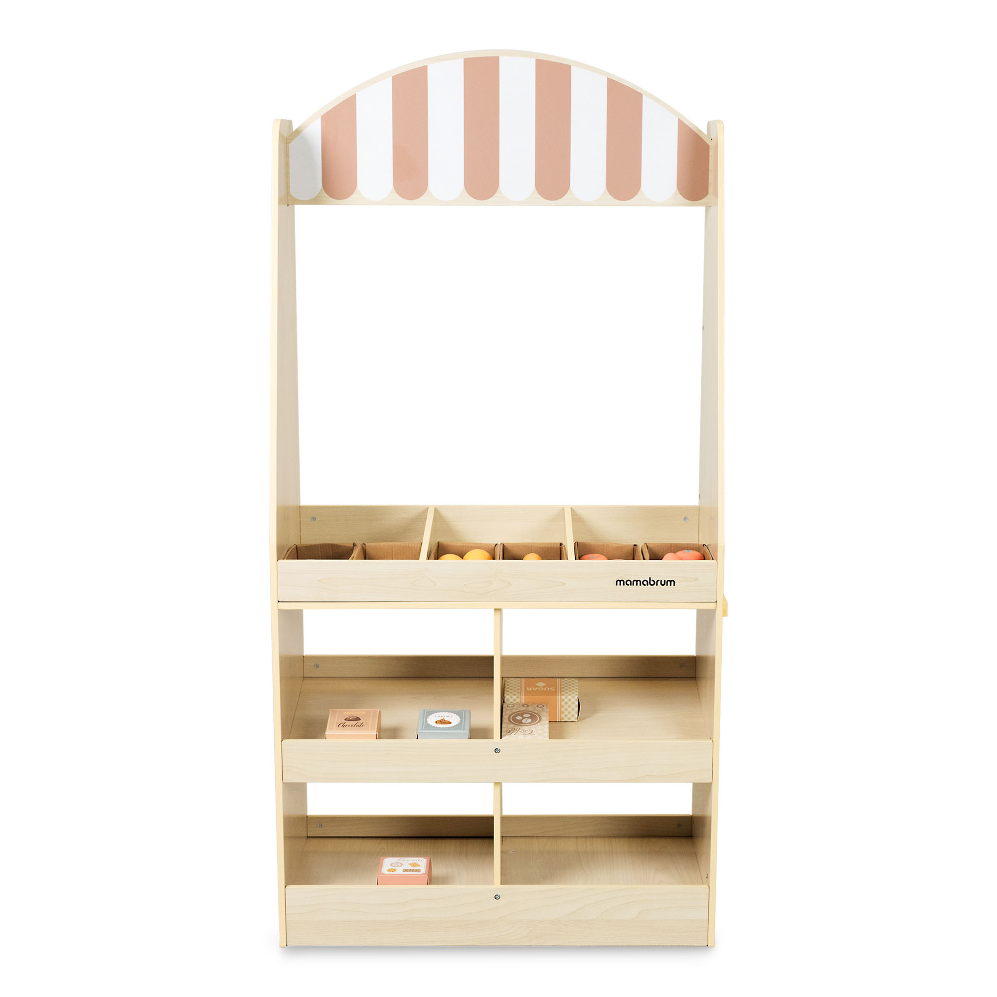 Muunna lapsen huone vilkkaiksi supermarketeiksi! Mamabrum-puinen kauppa on todellinen luovan leikin keskus, jossa pienet voivat leikkiä myyjää tai asiakasta. Sen realistinen muotoilu , suuri SUPERMARKET-kyltti ja käytännöllinen taulu hintojen tai tarjousten kirjoittamista varten saavat lapset tuntemaan kuin he olisivat oikeassa kaupassa . Se on loistava tapa kehittää mielikuvitusta, oppia laskemaan ja harjoitella sosiaalisia taitoja – kaikki tämä hauskanpidon avulla, joka ei koskaan vanhene!