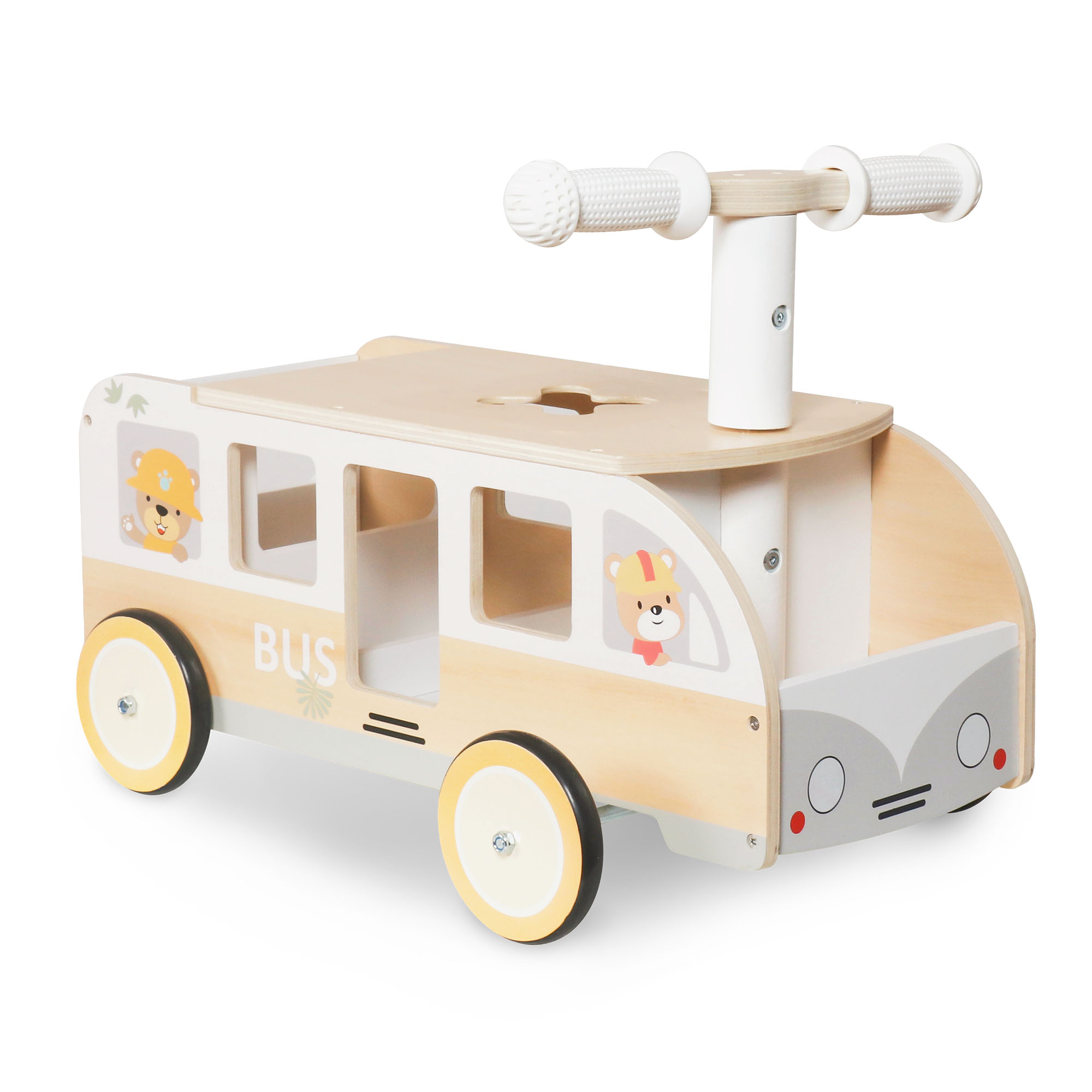 Puinen lasten bussi - Bussi, jossa on säilytyslokeroita ja tilaa pehmoleluille