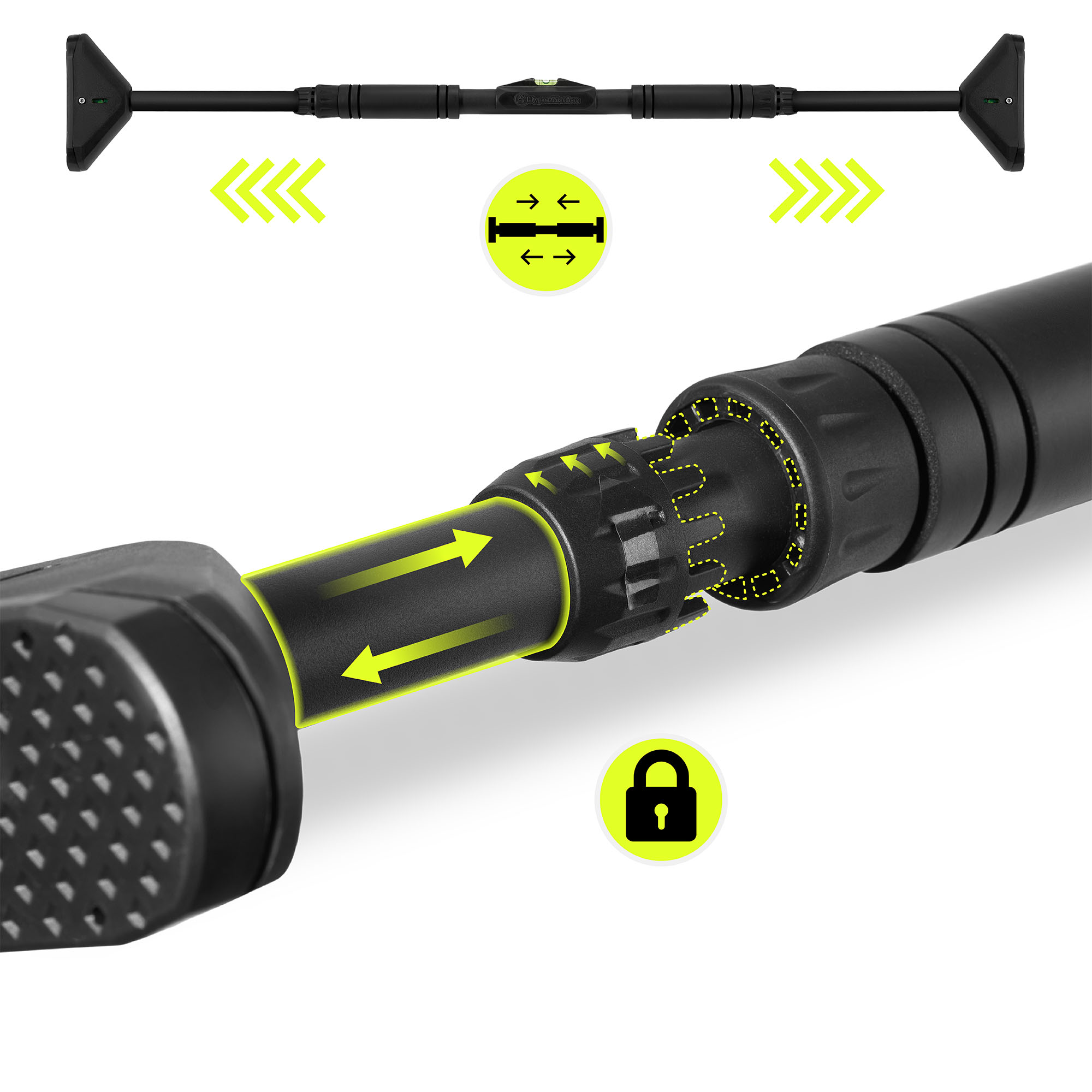 HyperMotion säädettävä leuanvetotanko 70–100 cm, 200 kg, musta
