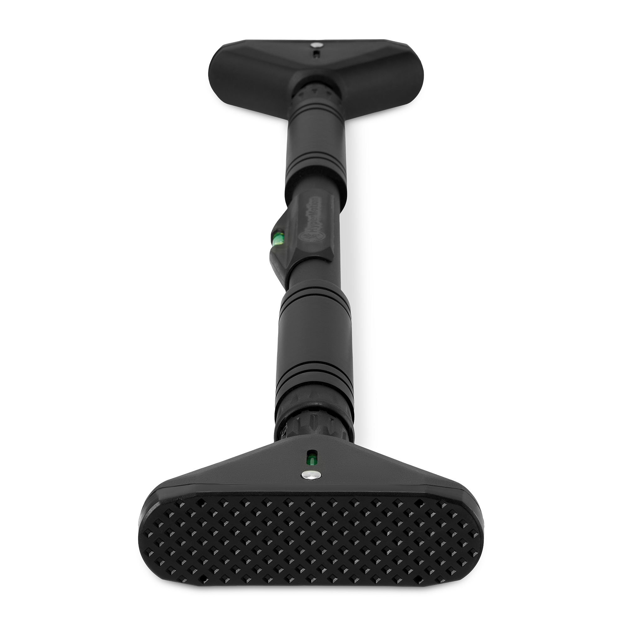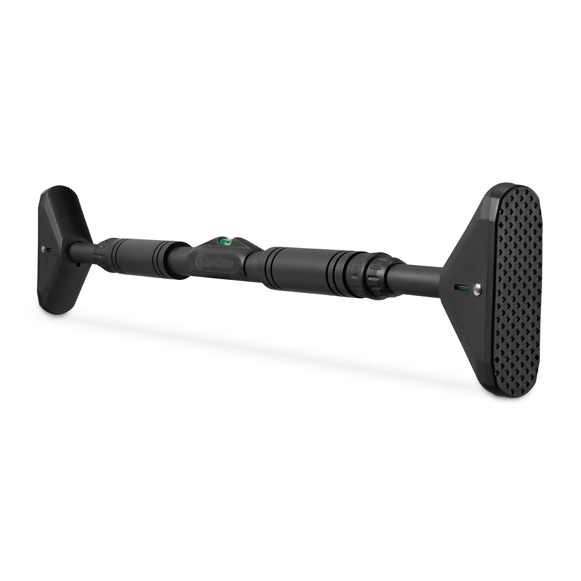 Laajennusvoimaan perustuva kiinnitysjärjestelmä mahdollistaa tangon nopean, vakaan ja ei-invasiivisen asennuksen ovenkarmien väliin ilman reikien poraamista tai lisätyökaluja. Modernista TPR (Thermo Plastic Rubber) -materiaalista valmistetut kumipäällysteiset kärjet suojaavat tehokkaasti ovenkarmien pintaa vaurioilta ja lisäävät pitoa varmistaen turvallisen asennuksen harjoituksen aikana. Sisäänrakennettu vatupassi helpottaa tangon oikeaa asettelua ja auttaa säilyttämään sen oikean asennon kokoonpanon aikana. Intuitiivisen rakenteen ansiosta asennus kestää vain hetken, ja oikein asennettu tanko pysyy vakaana ja käyttövalmiina harjoitteluun.
