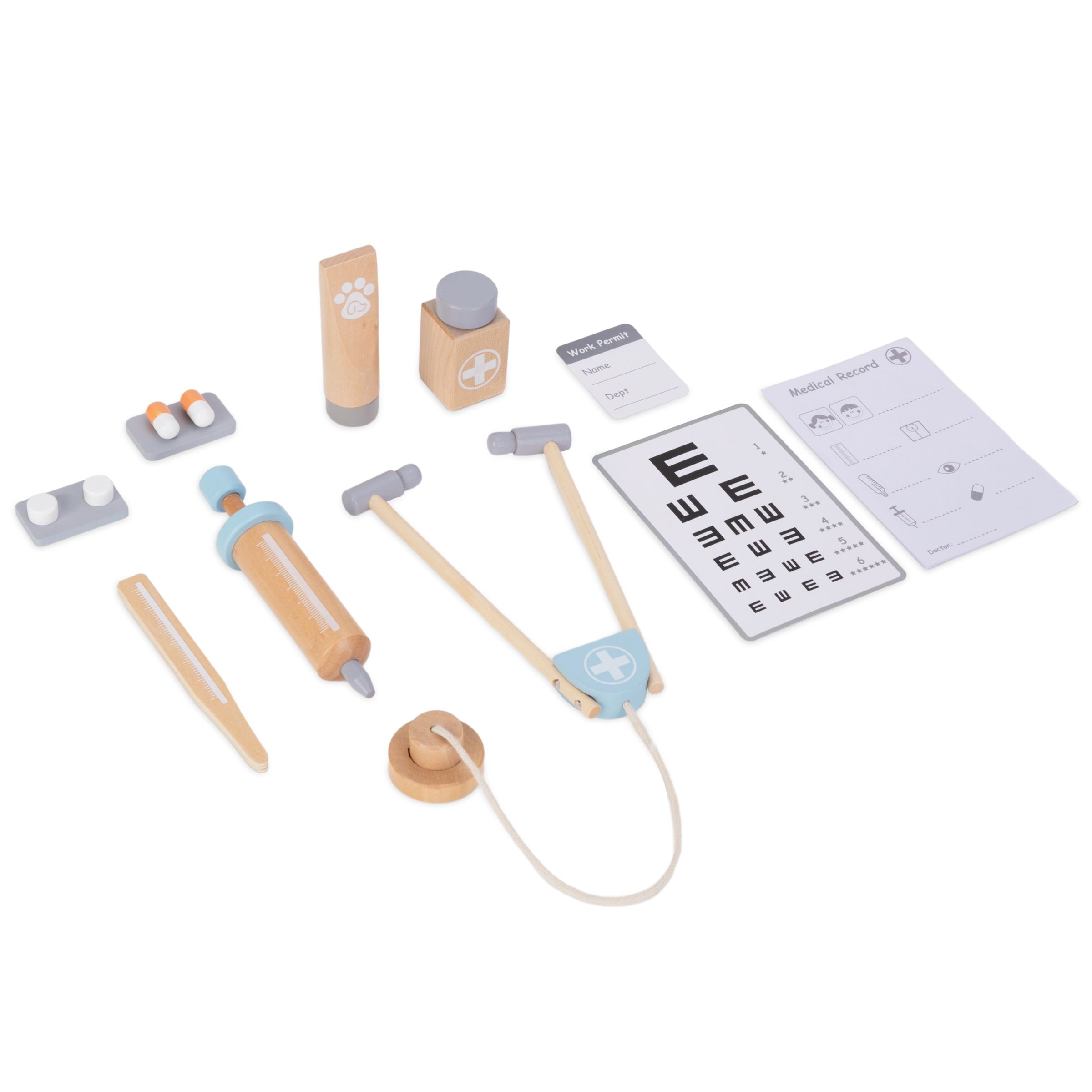Onko potilaallasi vatsakipuja? Vai onko hänellä huimausta? Pieni lääkäri tekee oikean diagnoosin ja antaa oikean lääkkeen. Little Doctor Set koostuu lukuisista tarvikkeista, joiden avulla lapset voivat leikkiä potilaan ja erikoislääkärin rooleja. Tilavaan laukkuun mahtuu kaikki, mitä lääkäri voi työssään tarvita.